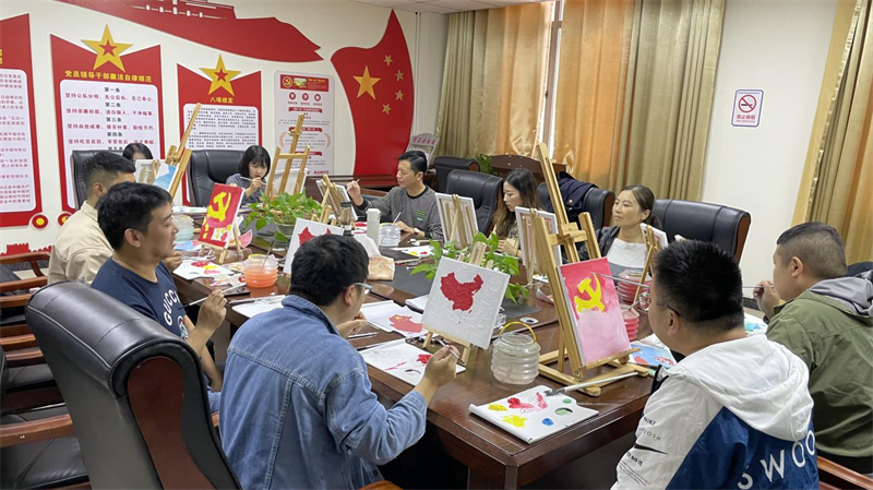 活動中,大家興致勃勃地領(lǐng)取了畫筆、顏料、油畫框等工具,即刻投入到繪畫狀態(tài)中。他們一筆一劃仔細(xì)斟酌、認(rèn)真構(gòu)思,充分發(fā)揮想象,通過精心的布局、豐富的色彩,繪出自己熱愛黨的心聲,勾勒出紅色印記,用色彩點燃愛國情懷,為迎接黨的二十大勝利召開獻(xiàn)上一份真摯的祝福。