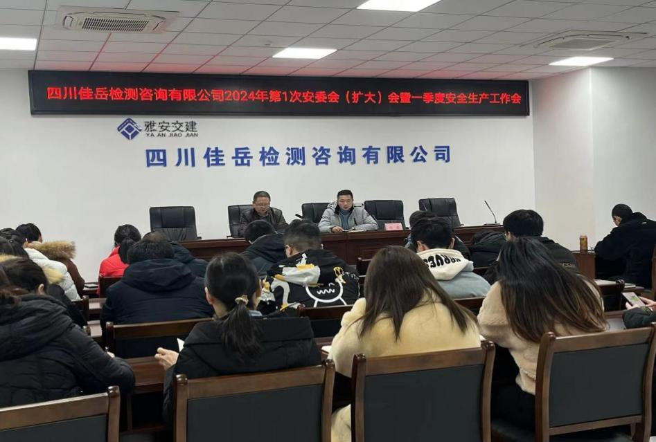 1月5日,四川佳岳檢測咨詢有限公司召開2024年一季度安委會(擴大)會議暨安全工作部署會議,傳達學習近期安全生產(chǎn)相關(guān)文件精神,通報2023年安全生產(chǎn)工作情況,對百日安全攻堅專項整治行動進行再安排,并簽訂2024年度各級安全責任目標責任書。