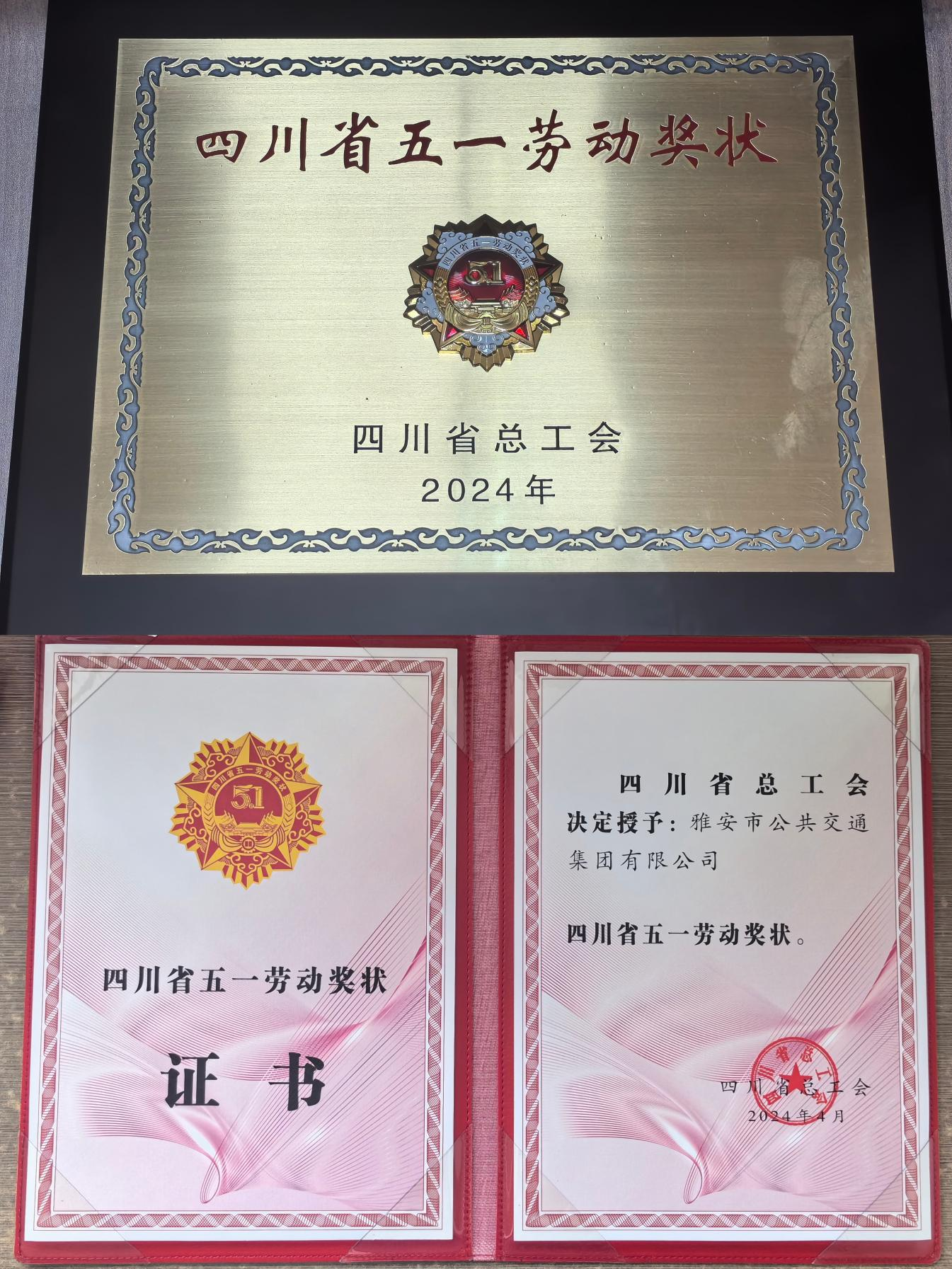 近日,2024年四川省五一勞動(dòng)獎(jiǎng)名單出爐,雅安交建集團(tuán)公交公司榮獲2024年“四川省五一勞動(dòng)獎(jiǎng)狀”。