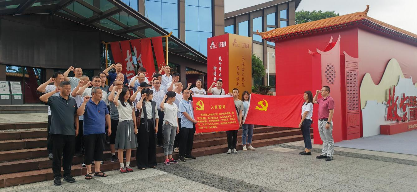 活動現(xiàn)場,曲樂清悅,氛圍熱烈,館內(nèi)陳列著與蒙頂山茶有關(guān)的歷史文獻和實物資料,以“天下蒙茶”為基本陳列,再現(xiàn)了蒙頂山茶的發(fā)展歷史。古有“齊武帝與茶”,解說員深入淺出地講解了茶文化中蘊含的廉潔哲理。通過現(xiàn)場講解,弘揚了中國傳統(tǒng)茶文化中“精行儉德” “廉、美、和、敬”的精神。參觀結(jié)束后,全體人員在古色茶香又不失莊嚴的博物館前,鏗鏘有力地重溫入黨誓詞。