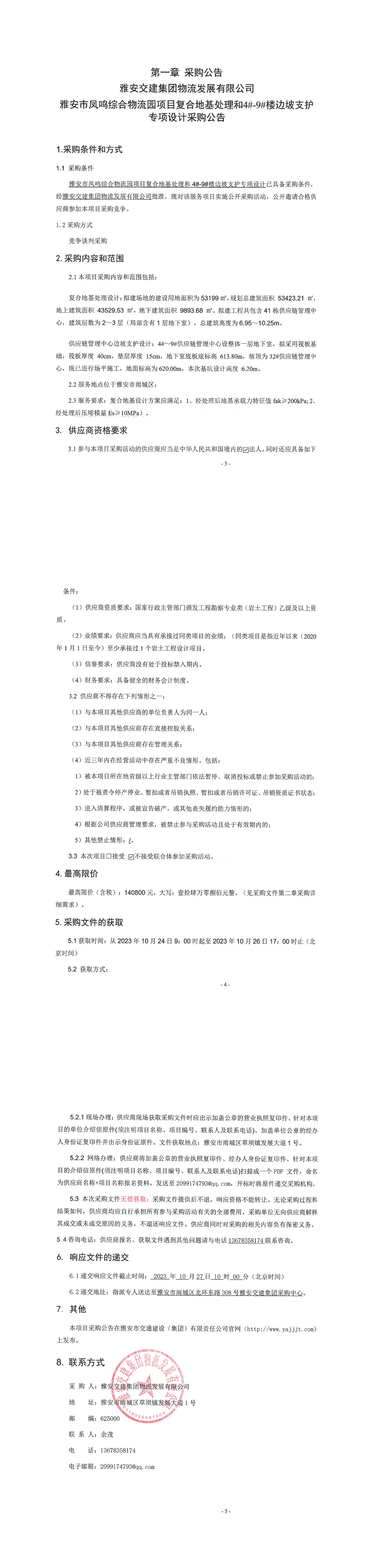 雅安交建集團(tuán)物流發(fā)展有限公司雅安市鳳鳴綜合物流園項(xiàng)目復(fù)合地基處理和4#-9#樓邊坡支護(hù)專項(xiàng)設(shè)計(jì)采購公告