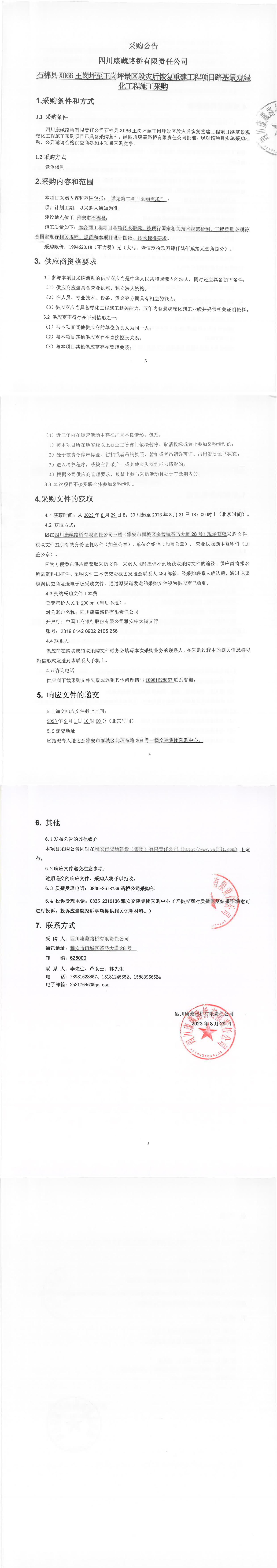 四川康藏路橋有限責任公司石棉縣X066王崗坪至王崗坪景區(qū)段災(zāi)后恢復(fù)重建工程項目路基景觀綠化工程施工采購公告