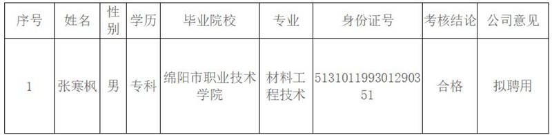 根據(jù)《雅安交建集團(tuán)康居建設(shè)工程質(zhì)量與室內(nèi)環(huán)境污染檢測(cè)有限公司綜合考核聘用工作方案》,按照“公開、平等、競(jìng)爭(zhēng)、擇優(yōu)”的原則,經(jīng)考核合格,現(xiàn)將我公司擬聘用人員名單予以公示: