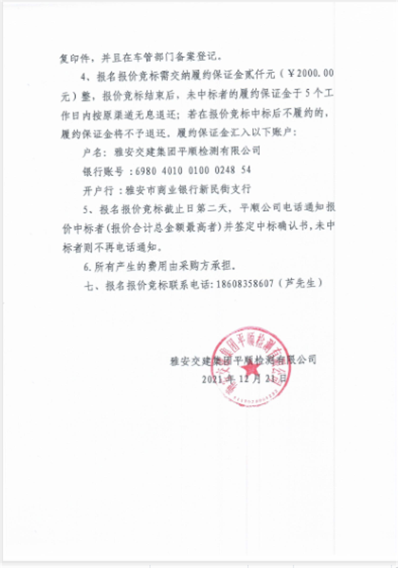 雅安交建集團(tuán)平順檢測有限公司 關(guān)于處置49輛貨車相關(guān)情況的公告
