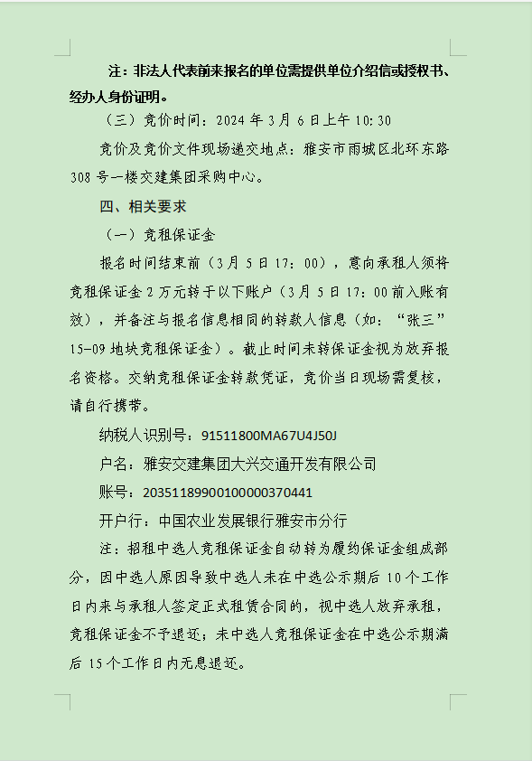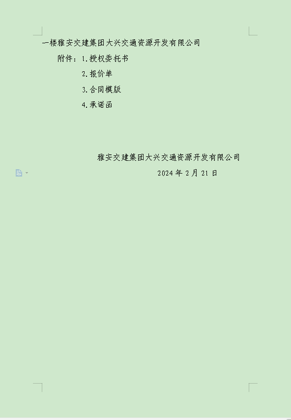 雅安交建集團(tuán)大興交通資源開(kāi)發(fā)有限公司關(guān)于雨城區(qū)姚橋片區(qū)15-09地塊2024年競(jìng)價(jià)招租的公告附件