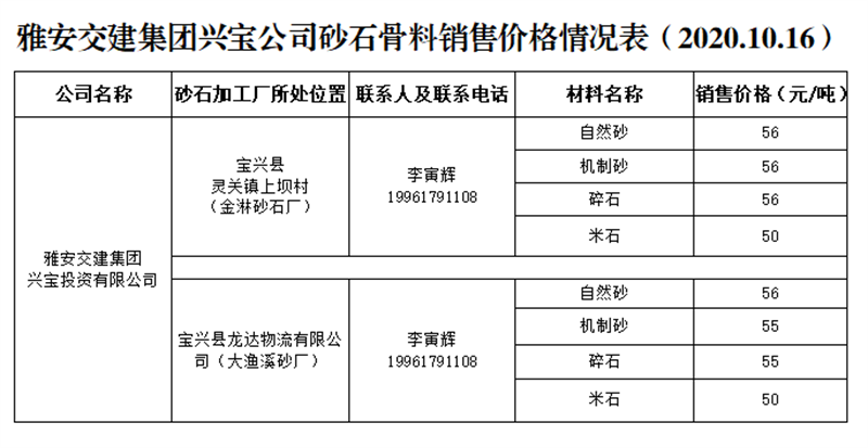 ÑŰ²½»½¨¼¯ˆF(tu¨¢n)ÅdŒš¹«Ë¾É°Ê¯¹ÇÁÏäNÊÛƒr(ji¨¤)¸ñÇé›r±í£¨2020.10.16£©