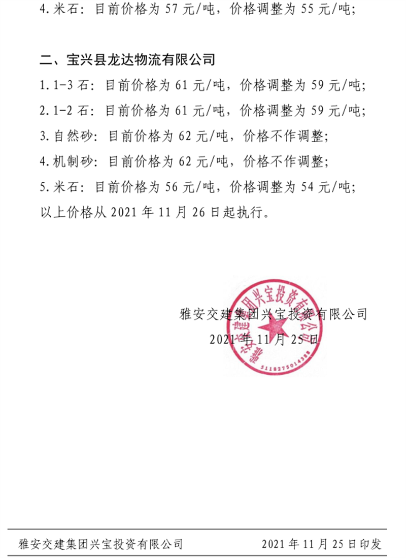 ÑŰ²½»½¨¼¯ˆFµ¤Ê¯¹«Ë¾êP(gu¨¡n)ÓÚÕ{(di¨¤o)Õûɰʯ³ÉÆ·¹ÇÁÏäNÊÛƒr¸ñµÄ֪ͨ£¨2021.12.9£©