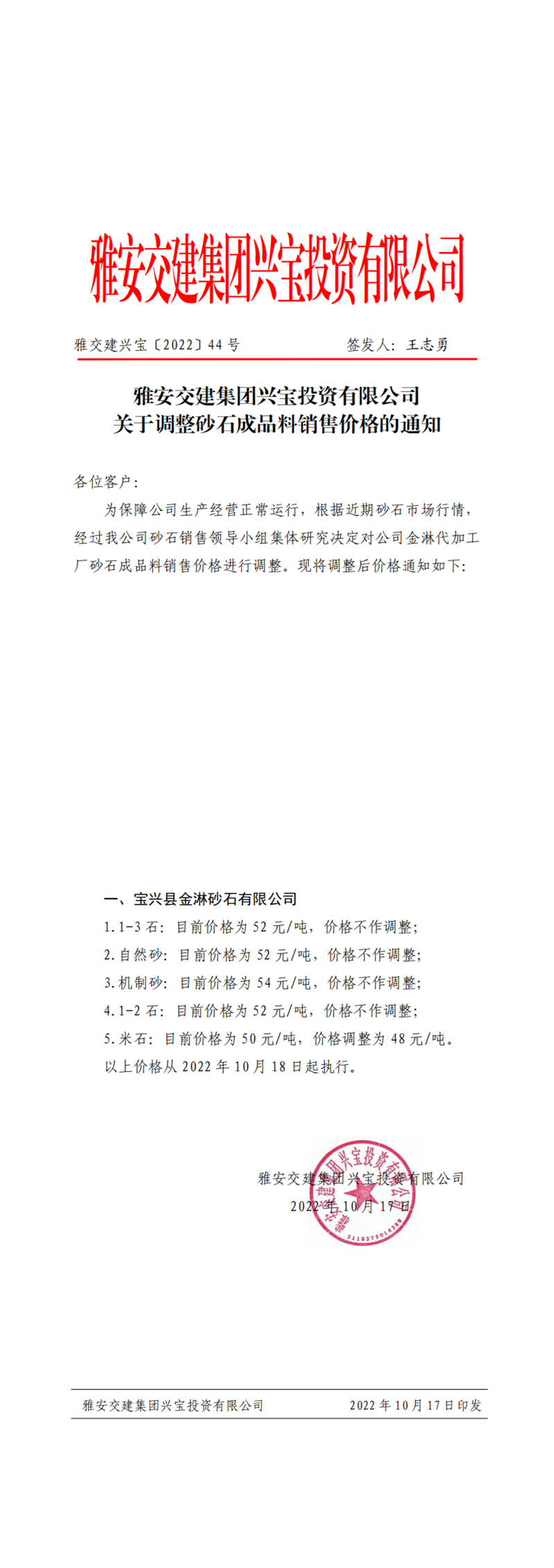 ÑŽ»½¨ÅdŒš¡²2022¡³44Ì– êP(gu¨¡n)ÓÚÕ{(di¨¤o)Õûɰʯ³ÉÆ·ÁÏäNÊÛƒr¸ñµÄ֪ͨ10.17