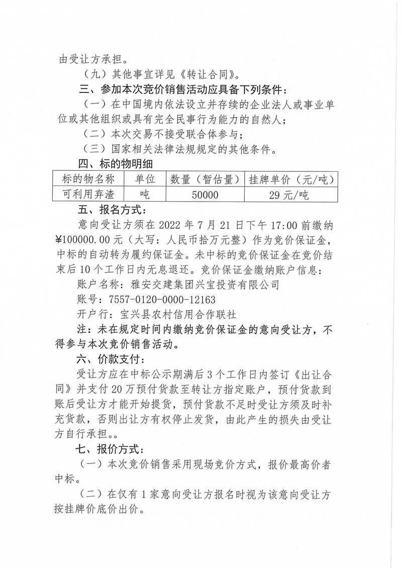 寶興縣靈關(guān)鎮(zhèn)代碑寺土地整理項(xiàng)目一批可利用棄渣競(jìng)價(jià)銷售公告7.15(5萬噸)